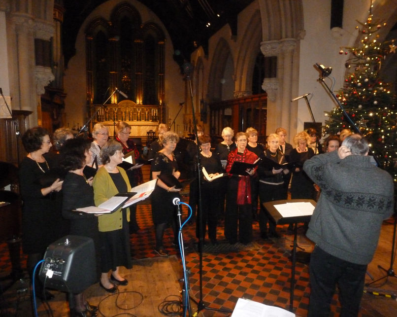 Incantata Ladies Choir sound check for the Christmas Carol Service in Reading Minster with Radio Berkshire.